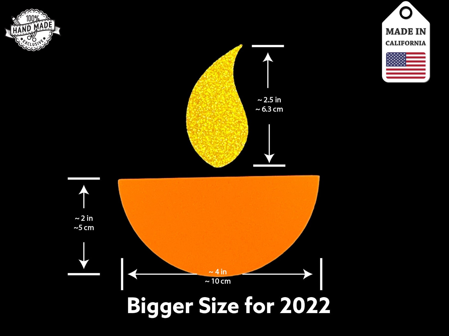 > Bigger size for both the diya and the flame